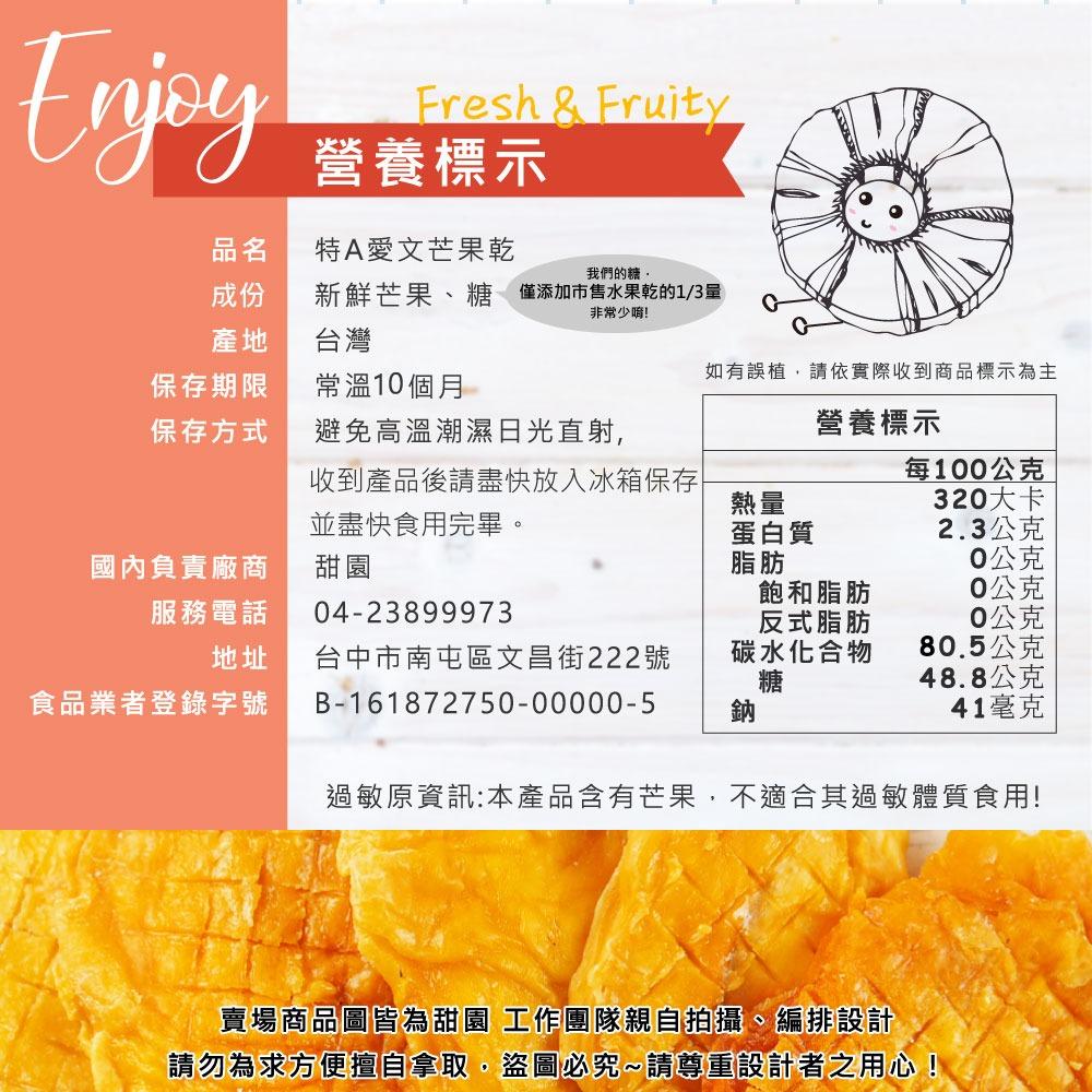 【無糖愛文】製作中無添加任何糖,吃的甜度完全都是水果本身的甜度。