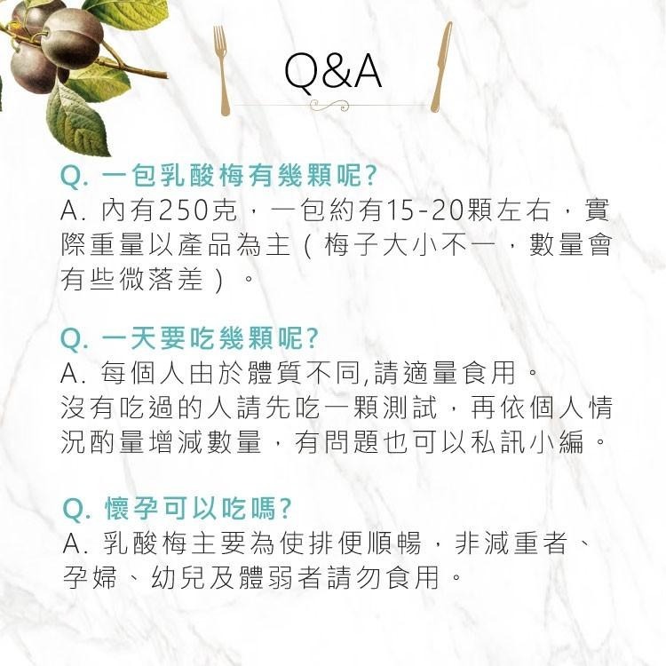 (1)250g-封口夾鏈袋包裝(大約15-20不等,梅子大小不一,重量也會不一)