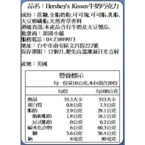 產品名稱 ►美國 HERSHEY'S KISSES 水滴巧克力
