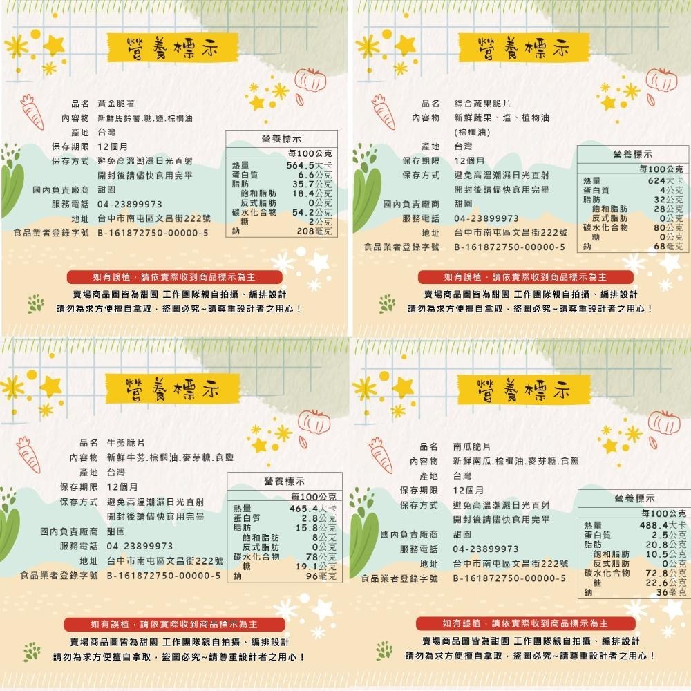 快來加入甜園的健康美味旅程,讓您的每一天都充滿活力與健康。品嚐這款綜合蔬果脆片,讓紅蘿蔔、牛蒡、地瓜條和竽頭條的美味伴隨著您,為您的生活增添無限的可能性。