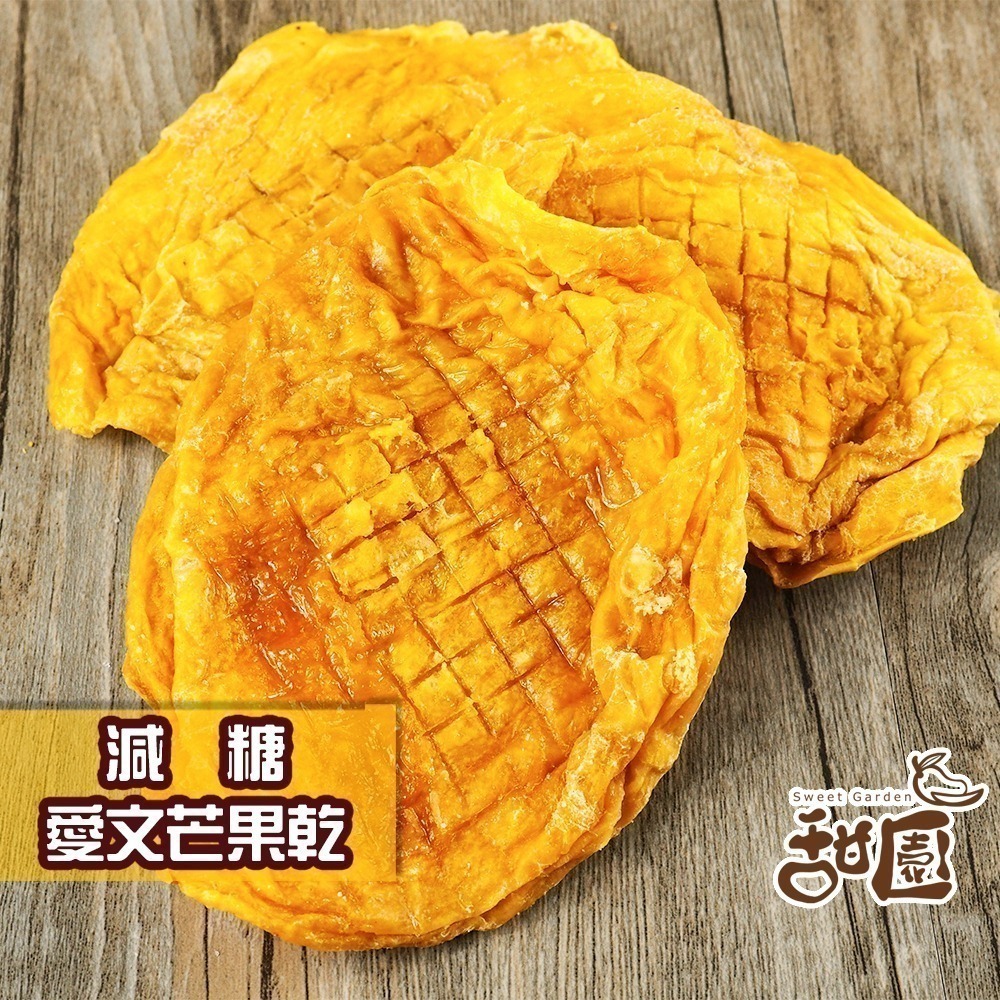 【減糖愛文】在製作過程中會添加一些些的糖增加果乾的香氣,吃起來的甜度會比一般市面販售的芒果乾甜度更低。