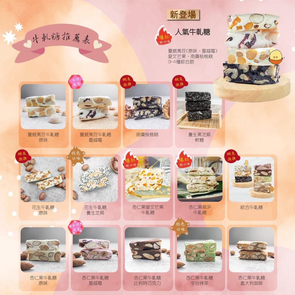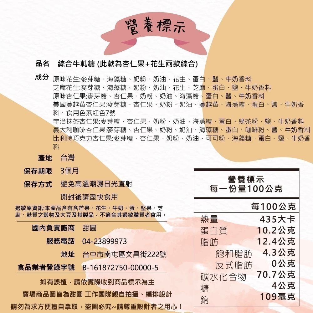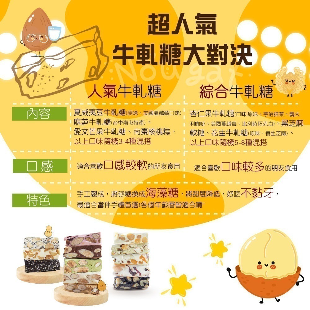 綜合牛軋糖:400g±5% (混搭杏仁/花生/黑芝麻等5-8種口味)