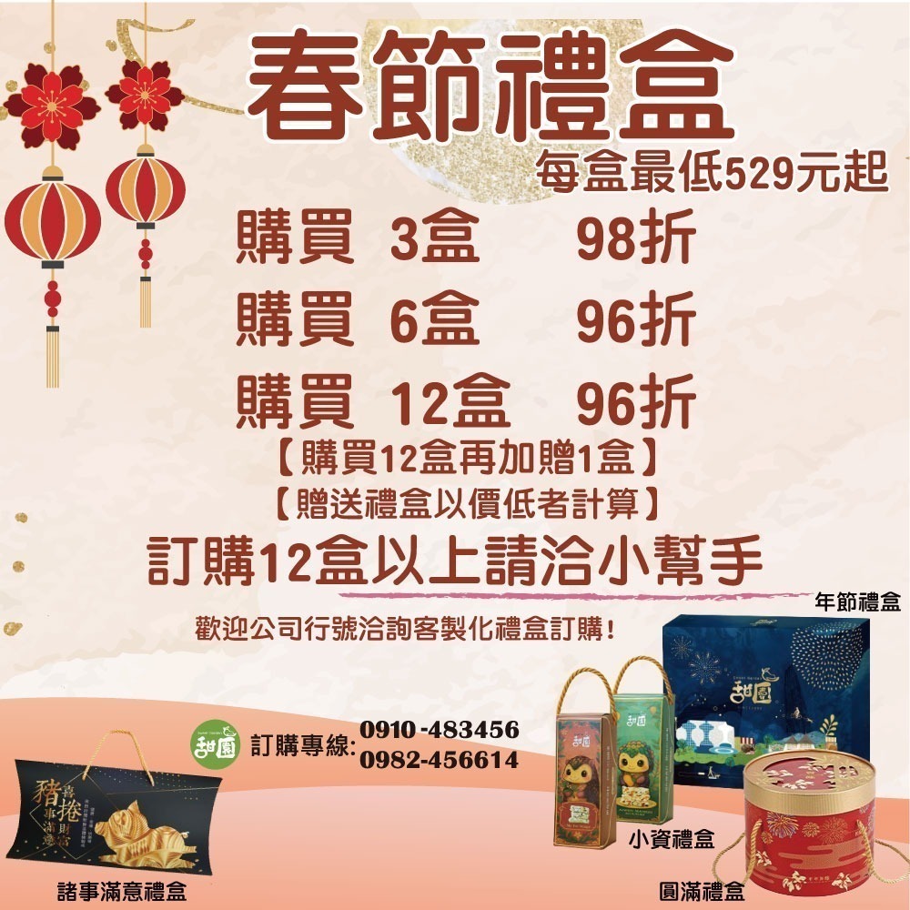 • 過年禮盒3盒95折,6盒9折,12盒85